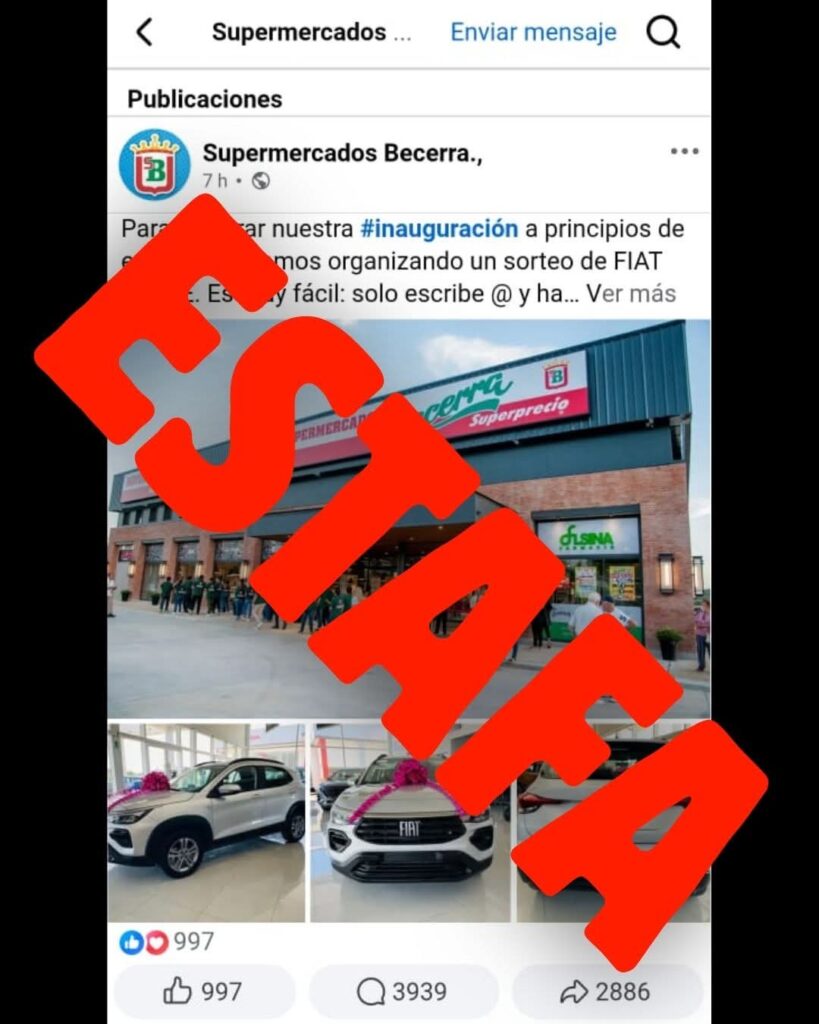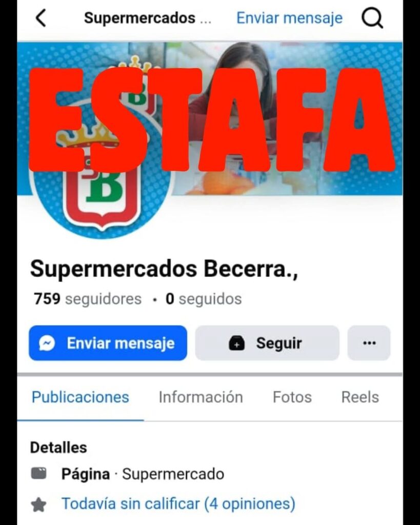 Desde Supermercados Becerra emitieron un comunicado urgente para advertir a la comunidad sobre la circulación de perfiles falsos que estarían realizando supuestos sorteos y promociones en nombre de la firma.