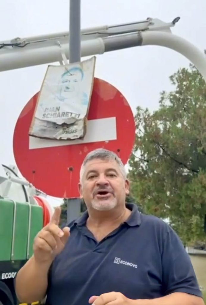 El empresario señala un viejo pasacalle del exgobernador Juan Schiaretti que aún cuelga de un poste de luz. “Ocho meses de la elección del diputado, fíjense, todavía están los carteles”, cuestionó indignado. Acto seguido, lanzó su definición más dura sobre la actualidad urbana: “Oncativo está mugriento, dense cuenta”.